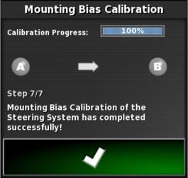 Dies bedeutet, dass das System über die erforderlichen Daten für den ersten Teil der Kalibrierung verfügt; die Kalibrierung der Montageabweichung wird hier unterbrochen.