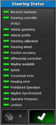 Falls der Lenkautomat bei Auswahl von „Lenkautomat einschalten“ nicht aktiviert wird, wird das Fenster „Lenkstatus“ geöffnet.