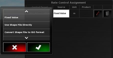 kann der Fahrer auf zwei Weisen eine neue Applikation erstellen: Durch Einstellen der Festwerte oder Importieren einer Shape-Datei, um eine variable Mengensteuerung zu ermöglichen.