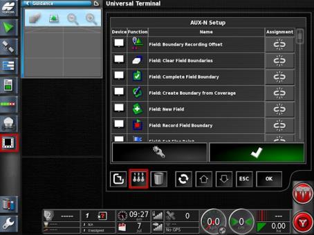 Die AUX-Steuerungen ermöglichen es den externen, ISO-fähigen Geräten und der Konsole, eine Reihe von Funktionen bereitzustellen, die den Eingängen auf Joysticks oder auf anderen ISO-fähigen Eingabegeräten zugewiesen werden können.