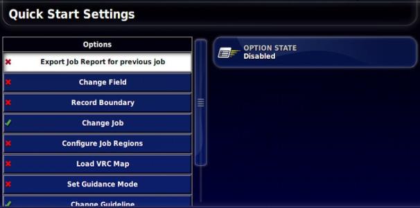 - Schnellstart: Durchläuft automatisch schrittweise die notwendigen Maßnahmen, um einen typischen Auftrag auszuführen. Dies kann nützlich sein, um Standardaufgaben schneller auszuführen. Ist die Option aktiviert, wird auf der rechten Seite im Menü Funktionen ein neues Menüelement angezeigt.