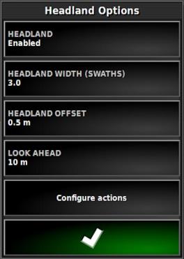 1. Stellen Sie sicher, dass Vorgewende aktiviert ist. Die Breite der Feldstraße kann mit „Vorgewendebreite“ oder „Vorgewendeversatz“ definiert werden. Wenn Sie beide Optionen verwenden, werden die beiden Werte zusammengerechnet, um die Gesamtbreite der Feldstraße anzugeben.