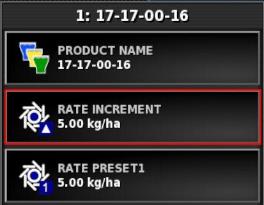 Das Verhalten dieser Option ändert sich, wenn der Fahrer die Pfeile nach oben bzw. unten drückt, um die gewünschte Ausbringmenge zu ändern. Die Menge kann entweder um einen Festwert oder um einen Prozentwert der unter VOREINSTELLUNG DER AUSBRINGMENGE 1 eingestellten Menge geändert werden.