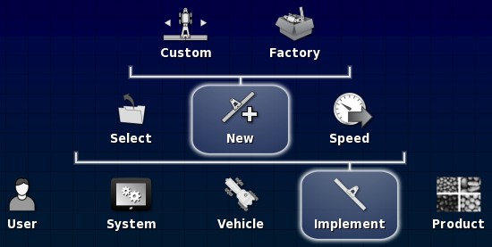 Erstellt ein neues Profil für das angekoppelte Arbeitsgerät. So legen Sie ein neues Arbeitsgerät an: