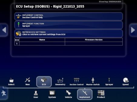 • Wählen Sie ECU-EINSTELLUNGEN AKTUALISIEREN, um die Daten zwischen der ISOBUS-ECU und der Konsole zu synchronisieren.
