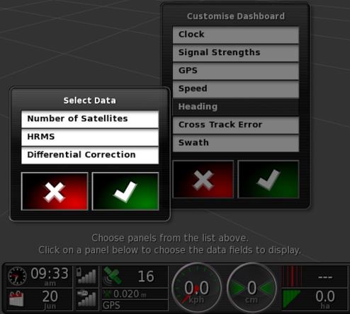 - Drücken Sie auf eine beliebige Stelle am Dashboard, um einzustellen, welche Daten angezeigt werden sollen.