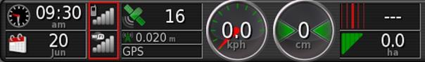 Hinweis: Wenn Sie beim Einrichten des GPS AUTOMATISCH eingestellt haben, kann sich die Farbe während des Betriebs ändern, da das System auf wechselnde Korrekturquellen zurückgreift. Wenn Sie beim Einrichten des GPS eine Quelle angegeben haben, versucht das System, diese Quelle zu erfassen.