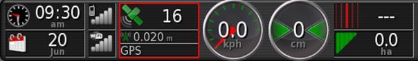 Ein grünes Satellitensymbol bedeutet, dass GPS-Signal und Korrekturquelle konvergiert sind. Dies richtet sich nach dem HDOP-Wert. Andere Farben bedeuten, dass bestimmte Daten nicht verfügbar sind: