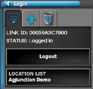 - Die Konsole hat eine eindeutige Link-ID. Drücken Sie auf Einloggen, geben Sie den AgJunction-Benutzernamen und das Passwort ein und bestätigen Sie Ihre Eingabe. Sie können sich manuell ein- und ausloggen.